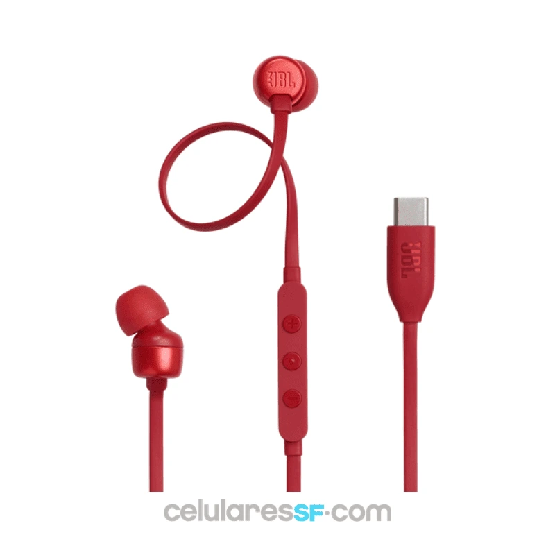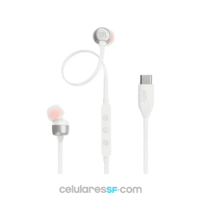 Auriculares intraaurales compatibles con audio de alta resolución y sonido JBL Pure Bass, conectividad USB-C, 3 botones, micrófono y control de preajustes EQ.