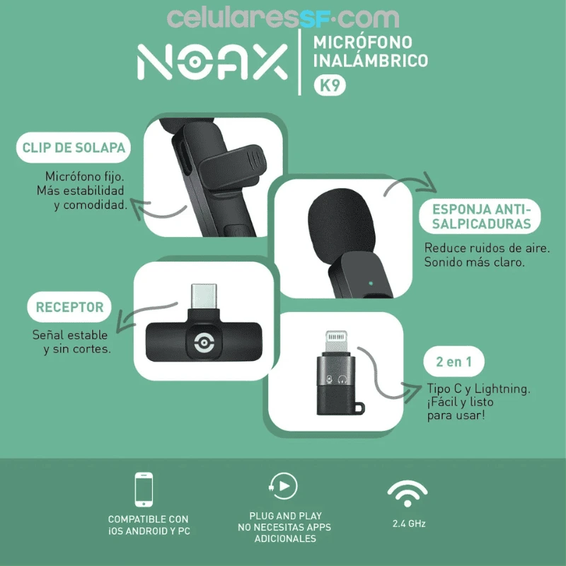Mejorá por completo la calidad de tus grabaciones con el micrófono corbatero NOAX K9, ideal para creadores de contenido, entrevistas, streaming, clases online y grabaciones en exteriores. Su diseño compacto y su tecnología inalámbrica lo convierten en una herramienta práctica y confiable para cualquier situación.